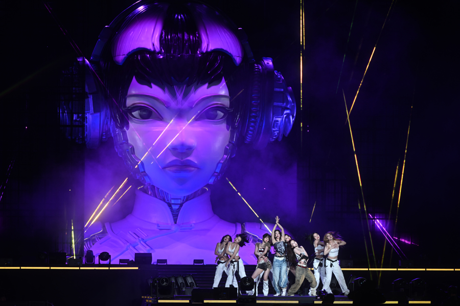在舞台呈现方面,演出经典与科技交融。舞台正中央,一名“东方少女”——名为“小忆”的数字舞台智能体惊艳亮相。该形象由“同忆首歌”节目组联合顶尖AI实验室共同孵化,“她”在舞台中央打碟、唱歌、跳舞、主持,引导全场观众举起手中的荧光棒或手机,实现光影同频共振。